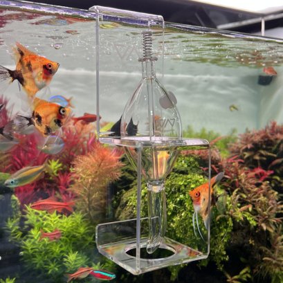 VIV GLASS FEEDER+CLEAR STAND ที่ให้อาหารปลาชนิดแก้ว มาพร้อมที่แขวน ใช้ได้กับกระจกหนา 6 มม