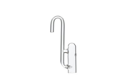 BELL GLASS MINI By adding CO2 that requires photosynthesis for aquatic plants into aquariums, long-term maintenance of aquatic plants inside an aquarium has become possible for the first time. Bell Glass Mini is modeled after an upside down bellflower blossom, and is a glass equipment for adding CO2 to the aquarium efficiently. The bubbles released by the L-shaped pipe inside the main body serves as a counter for measuring the amount of droplets added. A storage method is used, so that CO2 buildup inside the main body leads to gradual addition into the water. In this way, it avoids the over-addition of CO2 common to small aquariums.