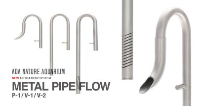 ADA's filtration system lineup now includes new stainless-steel outflow and inflow pipes. The Metal Pipe Flow P-1 (for outflow) has a movable outflow nozzle that can be moved left and right to create a water flow that matches the layout. The Metal Pipe Flow V-1/V-2 (for inflow) has a removable end cap for easy maintenance. The simple yet sharp design of the Metal Pipe Flow creates a new flow in Nature Aquariums.