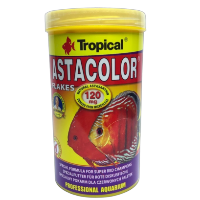 ASTACOLOR intensively colour-enhancing flake food for discus. Colour-enhancing flake food intended for everyday feeding of discus, especially red, and other fish whose coloration is to be intensified. High dosage of natural carotenoids, including easily assimilable astaxanthin, enhances coloration.