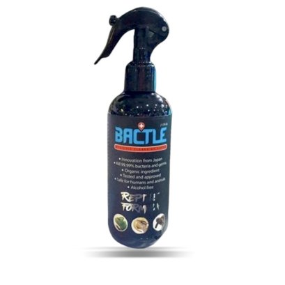 BACTLE คือ สเปรย์สำหรับทำความสะอาดฆ่าเชื้อโรค แบคทีเรีย และโปรโตซัว อันเป็นต้นเหตุของการการป่วยในมนุษย์และสัตว์เลี้ยง สามารถฆ่าเชื้อแบคทีเรียได้ 99.99% เชื้อโรคจะถูกทำลายภายในเวลา 10 วินาที ใช้ส่วนผสมที่เป็นมิตรต่อสิ่งแวดล้อมและปลอดภัยอย่างแท้จริง เพราะใช้สารสกัดจากแร่ธาตุธรรมชาติเป็นส่วนประกอบ ไม่มีสารเคมีและแอลกอฮอล์ จึงไม่เป็นพิษต่อคนและสัตว์ โดยใช้เทคโนโลยีการผลิตอันทันสมัยจากประเทศญี่ปุ่น ที่ผ่านการวิจัยและมีการรับรองผลจากสถาบันวิจัยทั้งในและต่างประเทศ